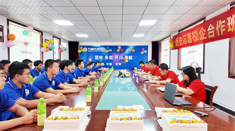 2025年8月28日上午11时,西安万通汽车学校会议室内洋溢着热烈而庄重的气氛,VIP2502班开班典礼在此隆重举行。校区主任张见兵、教务处主管李旭东、总务处主管李林、学生处主管万云飞、西安市职业技能鉴定中心驻校指导教师秦鹤等领导出席典礼,与42名新生共同见证这一重要时刻。