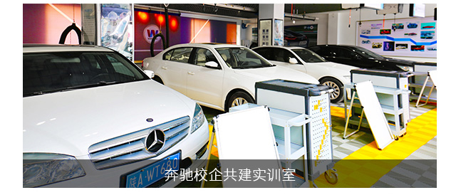 实训设备多,发动机实训室12间包含发动机40余台、校企共建整车实训室6间包含奔驰、宝马、奥迪等实训车25辆,钣喷美实训群10余间。