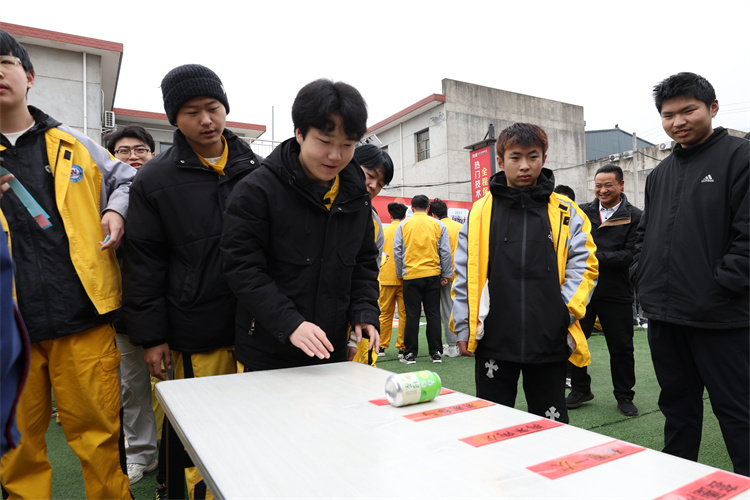 在“猜灯谜”区域,同学们或凝神思考,或热烈讨论,猜中灯谜后便可获得一次套圈机会,现场气氛紧张而欢快。“好运滚滚来”项目中,参与者通过滚动易拉罐到指定位置赢取套圈次数,三次机会让不少同学跃跃欲试。而“沙包大赛”则考验了大家的精准度,沙包落入靶心的一刻,欢呼声此起彼伏。